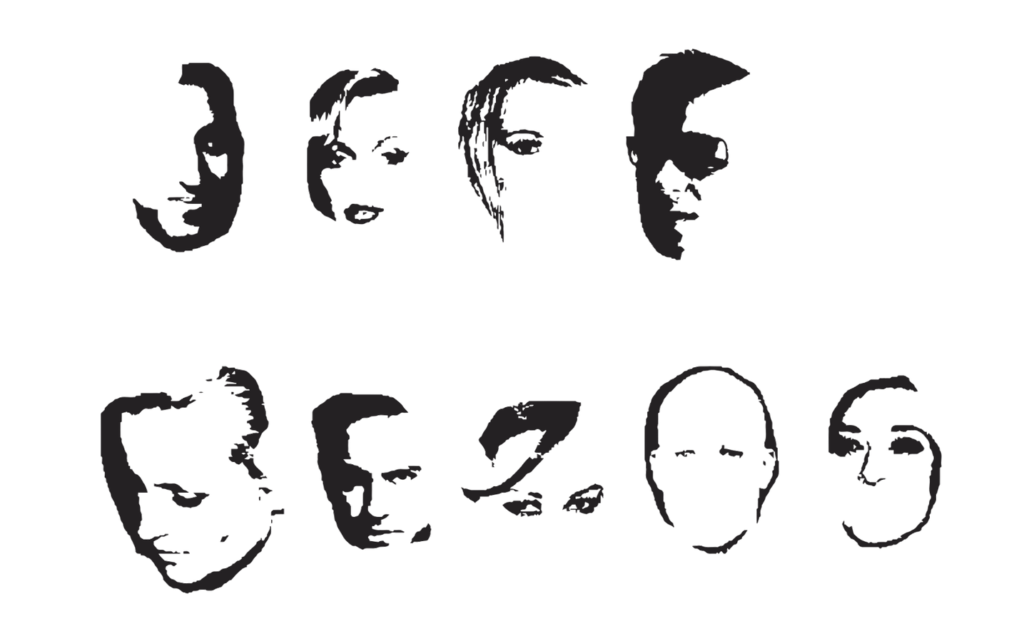 Public Display is a handmade digital display font created by erasing parts of celebrity faces from a facial recognition training dataset. To be under a watchful and surveillant eye is a condition of hypervisibility, explored here through the intervention of erasure. Facial recognition systems are increasingly integrated into policing practices that disproportionately target communities of color. The common practice of academics and corporations building facial recognition is to mine photos of unsuspecting individuals on the internet without their knowledge or consent, public figures and private citizens alike. These entities seek to train algorithms to read patterns within faces, but the line between pattern matching and racist phrenology is often thin.